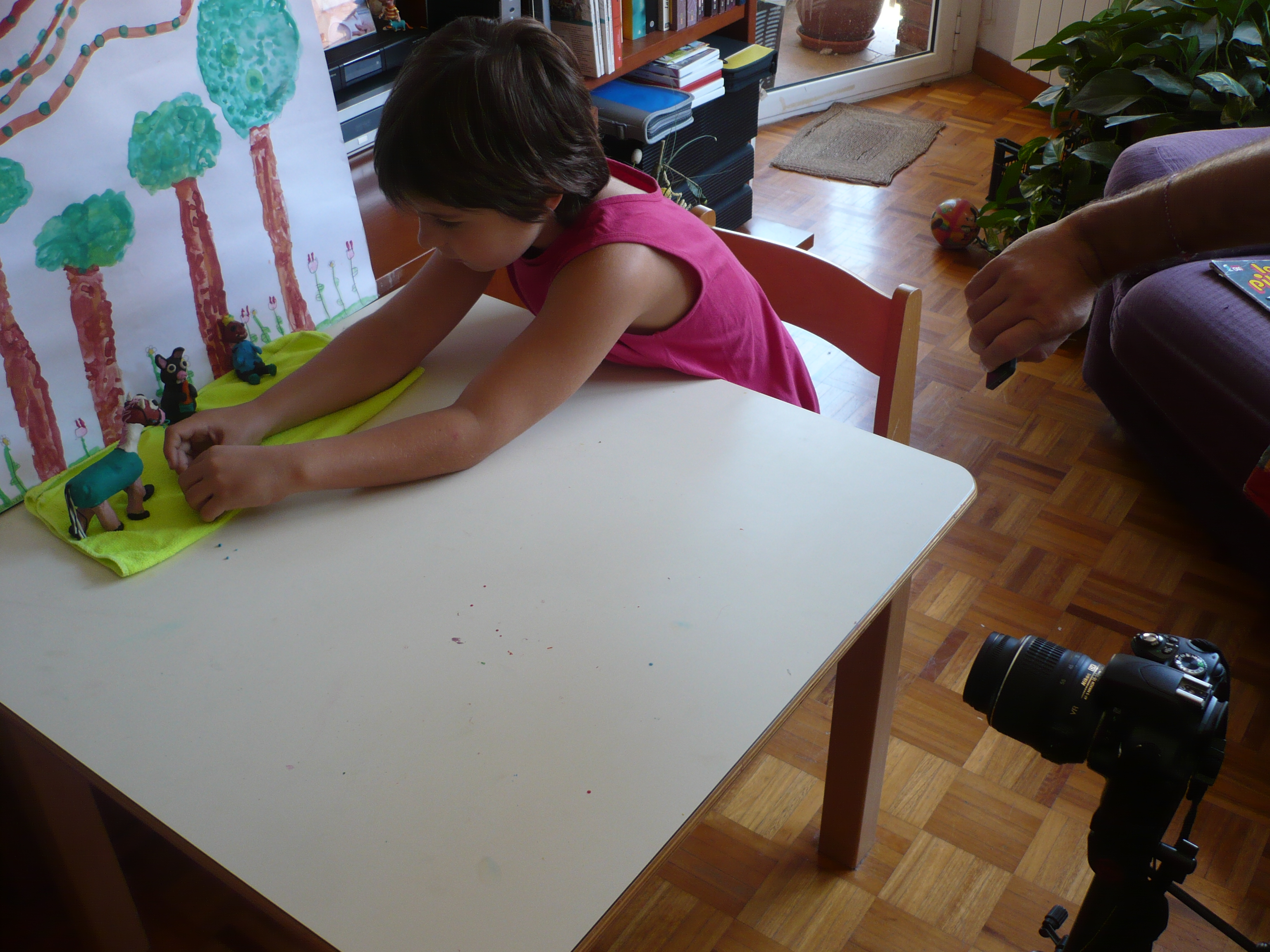 Bueno la peli se me ocurrió por casualidad un día de este verano que lo tenia libre le pregunte a mi mami : ¿mami juegas conmigo a plastelina ? y me dijo que bale y me dijo : ¿quieres hacer algún muñequito? y jo le dije que si. Y aora os voy a explicar la peli.